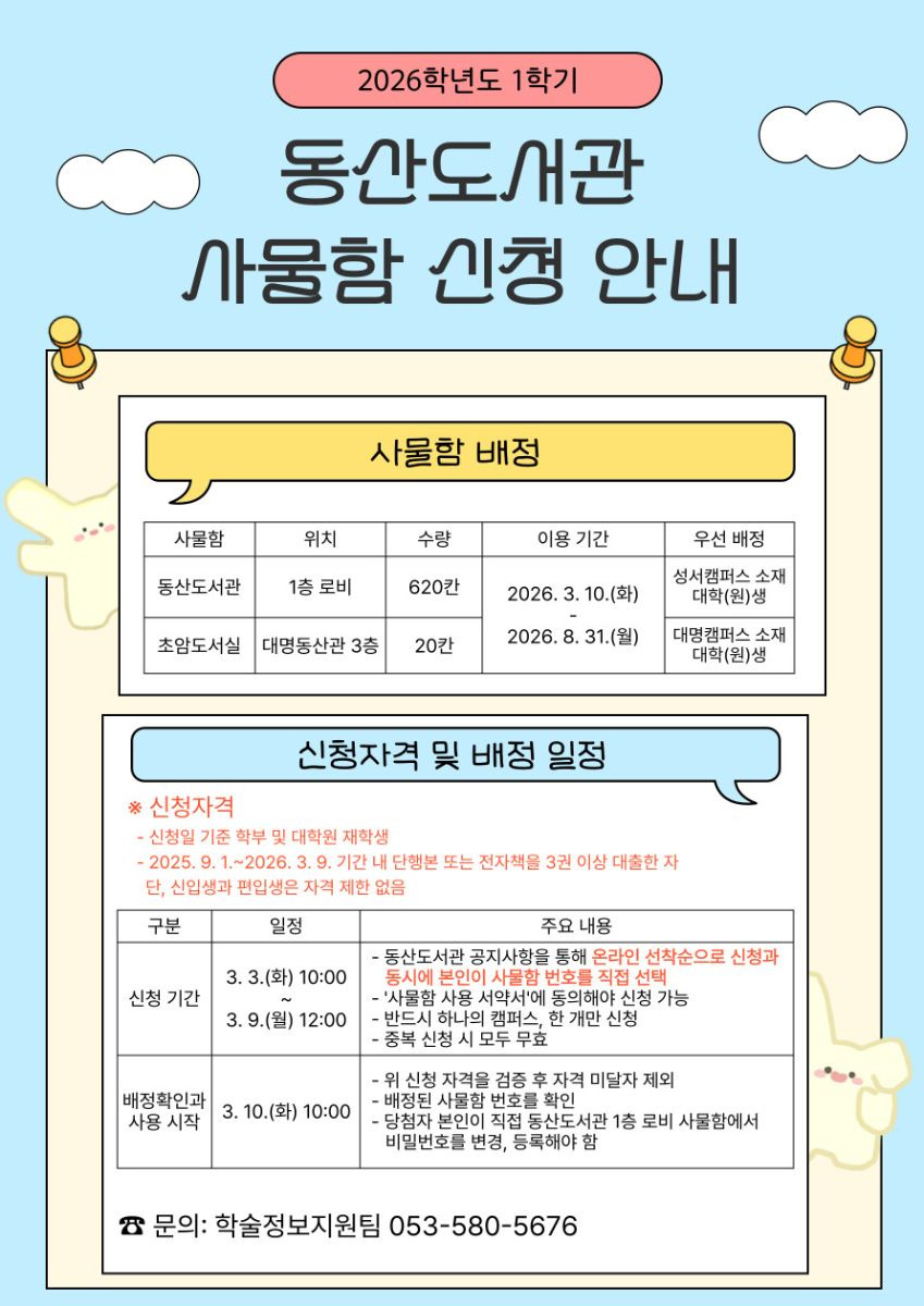 📢 2026학년도 1학기 사물함 선착순 배정 안내